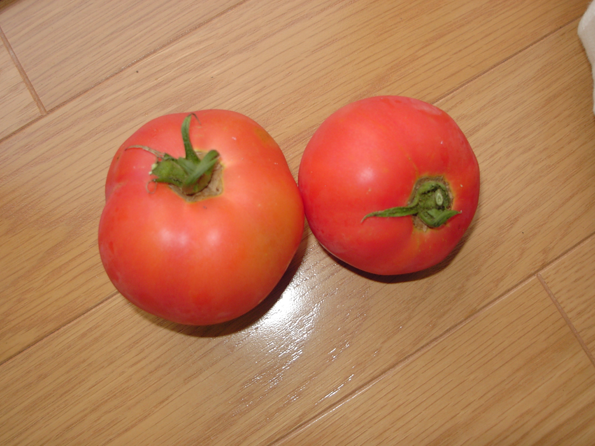 トマトが赤く実をつけたので、今日から収穫。実は、ミニトマトのつもりで買ったはずなんだけど、みるみるうちに大きくなって、普通のトマト・・・。??とにかく、私はトマト好きなので、ミニでも何でもいいんだけどね。