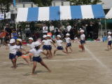 おたふく風邪で1週間お休みした後の運動会なので、なかなか心配でしたが、それなりに頑張れました。私としては、今年こそ かけっこ1番を期待したのですが、それは無理でした。どの競技もスタートが、のろのろしてました。仕方ありませんね・・。でも、今年も最後の母親父親先生のリレーは、盛り上がりました〜〜。白熱!!パパも父親競技で盛り上がりご満悦!結果が問題ではありません。参加して楽しめた事が良かった運動会でした。おばあちゃん・おばちゃん・育子ちゃんも来てくれて、応援いっぱいでした・・・^^