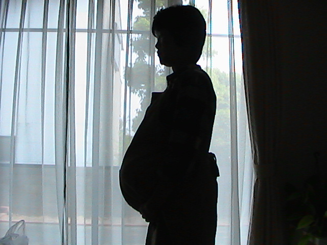 陣痛が来て、病院に向かう前に慌てて妊娠中の写真を撮らなきゃ!って事で、撮ったものです。