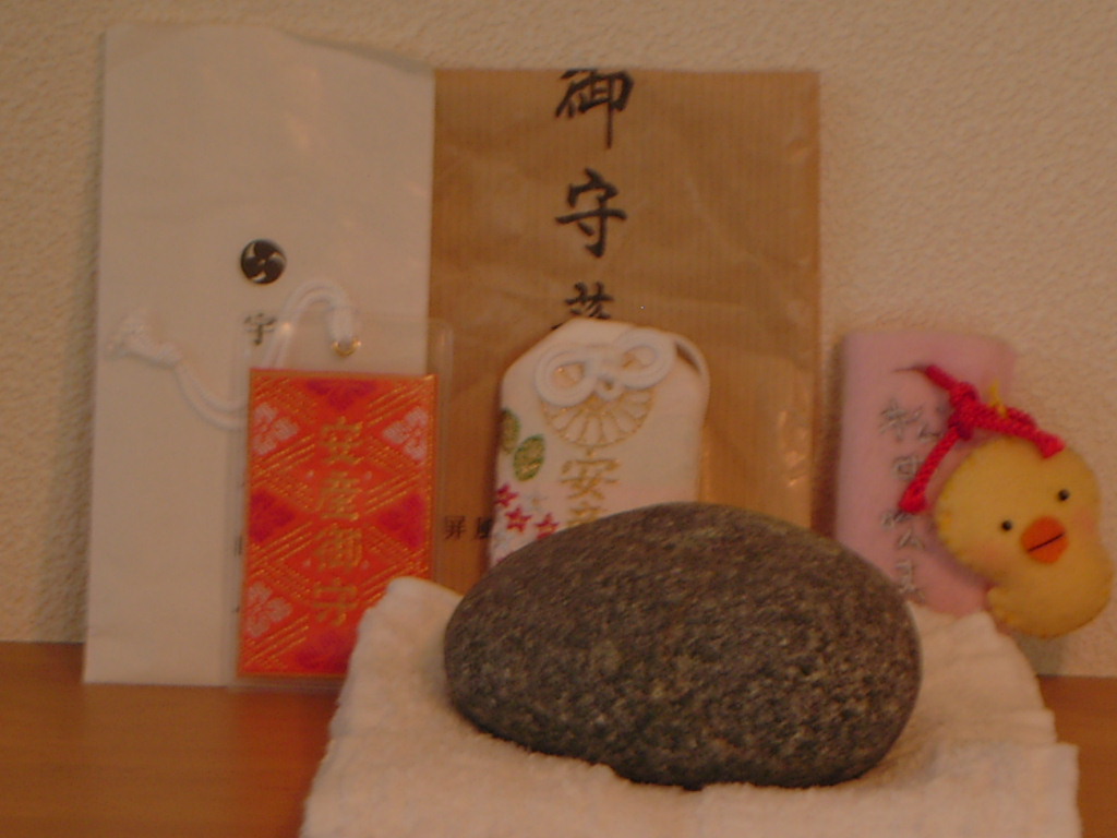 戌の日という事で、両親を車に乗せて、門司までくるくる寿司を食べに行った後、宇美八幡にお参りに行ってきた。その帰り、メールで友達も8月に赤ちゃんが生まれる事が分かった。嬉しい・・・。宇美八幡でもらってきた石は、大事に飾っている。